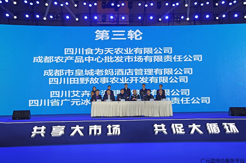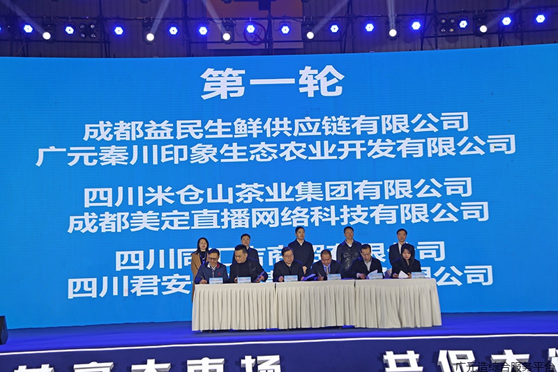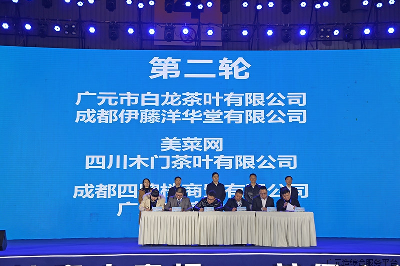 米仓山茶业、白龙茶叶、食为天农业等来自广元的公司与成都益民生鲜、美定直播网络、成都伊藤洋华堂、美菜网等成都企业现场签约。