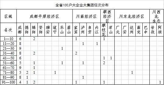 在区域分布方面,呈现区域竞相发展态势。100户榜单企业成都市占68席,环成都经济圈占84席,川南经济区占8席,川东北经济区占1席,攀西经济区6席,川西北经济区1席。与2019年榜单相比,成都市减少10席,环成都经济圈减少6席,川南经济区增加3席,川东北经济区增加1席,攀西经济区增加1席,川西北经济区增加1席。眉山、自贡、雅安、广安、资阳、广元申报的企业因体量差距而无缘榜单,南充、巴中、甘孜因企业申报缺失而无缘榜单。