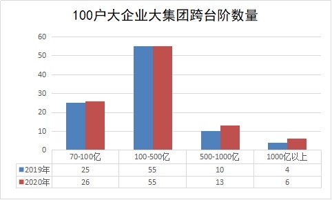 2020年度100户榜单排位第一的四川发展(控股)有限责任公司较2019年度100户榜单排位第一的企业营业收入增加480亿元;位居第100位的四川智易家网络科技有限公司营业收入较去年排名100位的企业增加4亿元,100户榜单门槛进一步提高。