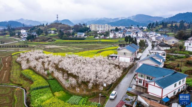 这是贵州省遵义市播州区枫香镇花茂村风貌(无人机照片,2020年2月28日摄)。新华社记者 陶亮 摄