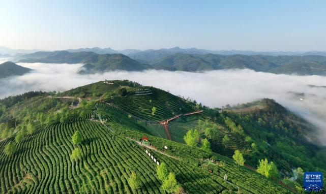 陕西省安康市平利县老县镇蒋家坪茶园(2022年4月5日摄,无人机照片)。新华社记者 陶明 摄
