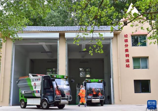 工作人员在河北省石家庄市鹿泉区镇宁路上的一处垃圾分类转运站处理垃圾(2022年4月21日摄)。新华社记者 杨世尧 摄
