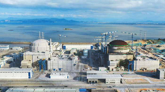 9月4日15时30分,“华龙一号”全球首堆中核集团福清核电5号机组首炉燃料装载正式开始。作为我国具有完全自主知识产权的三代核电技术,“华龙一号”创新采用177堆芯设计,降低了堆芯功率密度,提高了设计安全水平。中核集团福清核电1至4号机组于2017年9月17日全面投入商业运行,四台机组已累计发电超过1300亿千瓦时。5号、6号机组采用我国自主三代核电技术“华龙一号”,分别于2015年5月7日和12月22日开工建设。图为“华龙一号”示范工程福清核电5、6号机组外景图。