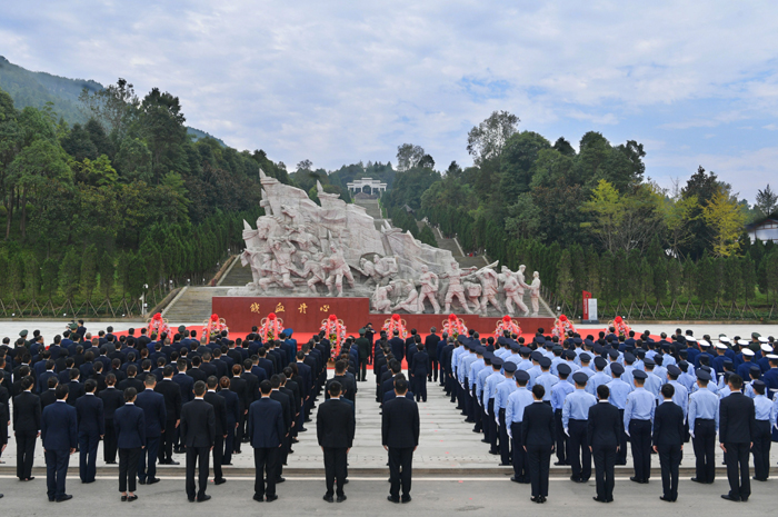天地英雄气,千秋尚凛然。陵园内松柏苍翠,庄严肃穆,“川陕忠魂”纪念碑巍然耸立。在“铁血丹心”广场,500多名各界代表神情庄重,面向主题雕塑整齐列队。