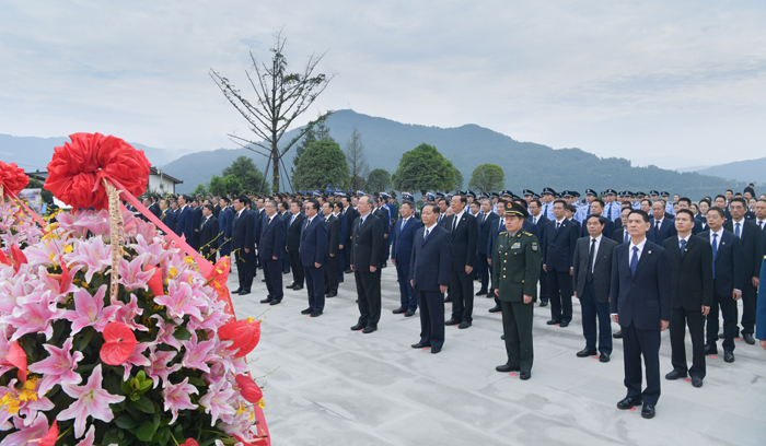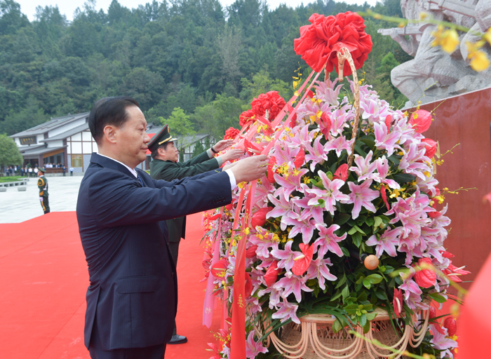 巴中市委书记罗增斌主持仪式。省委、省人大常委会、省政府、省政协、省军区、省检察院、武警四川省总队有关领导,省直有关部门负责同志,各民主党派省委、省工商联负责人和无党派人士代表,巴中市及通江县机关干部和各界群众代表,烈士遗属和老战士代表,中小学师生代表和驻巴中部队官兵代表等参加敬献花篮仪式。