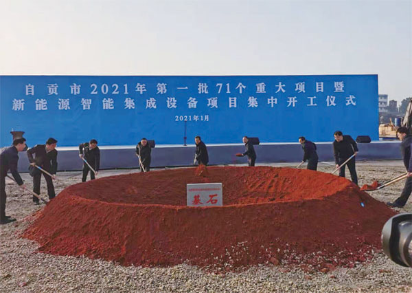 1月13日,自贡市2021年第一批71个重大项目暨新能源智能集成设备项目集中开工仪式,在位于大安区新民镇天元村的新能源充配电及储电智能集成设备制造项目施工现场举行。