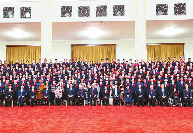 习近平等为受表彰的个人和集体代表颁奖。