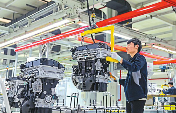3月9日,中国重汽集团卡车绵阳分公司生产线上,工人正在生产。