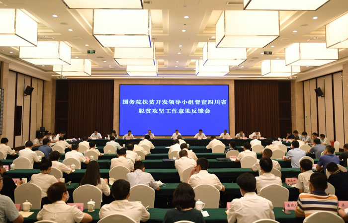 根据国务院扶贫开发领导小组的统一部署,7月22日至28日,国务院扶贫开发领导小组赴四川督查组,对我省2020年脱贫攻坚工作情况开展督查。督查组在川期间,省委书记彭清华会见督查组一行。28日,在成都召开的国务院扶贫开发领导小组督查四川省脱贫攻坚工作意见反馈会上,督查组组长、水利部副部长魏山忠反馈督查意见,省委副书记、省长尹力主持会议并作表态发言,省委副书记邓小刚汇报我省脱贫攻坚工作情况。
