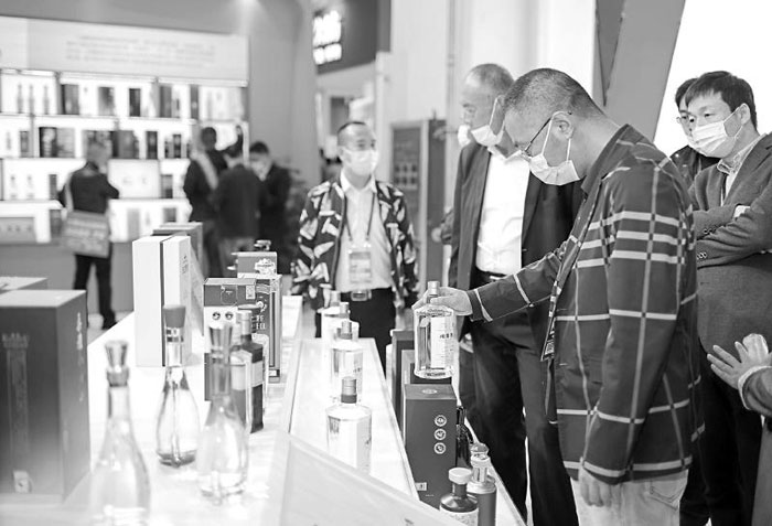 川酒集团展台前,逛展观众鉴赏旗下产品。