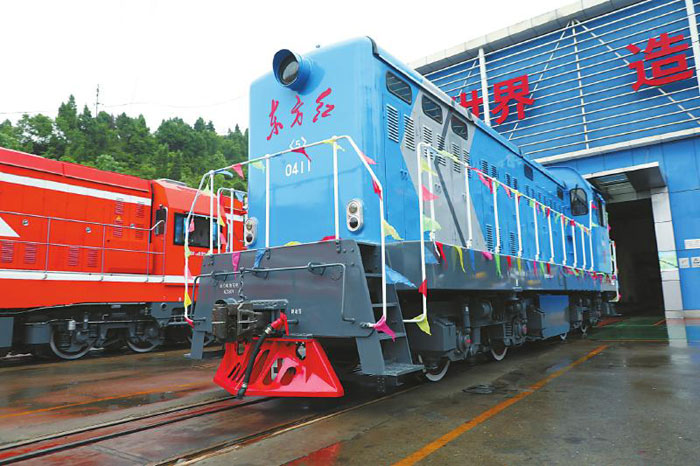 近日,在中车资阳公司厂房外,已经停用5年的东方红5型机车缓缓驶出。经过最近几个月的改造升级,这辆生产于上个世纪80年代的内燃机车焕然一新,变身为新型节能环保型机车。这是在我省下线的首台混合动力改造机车。