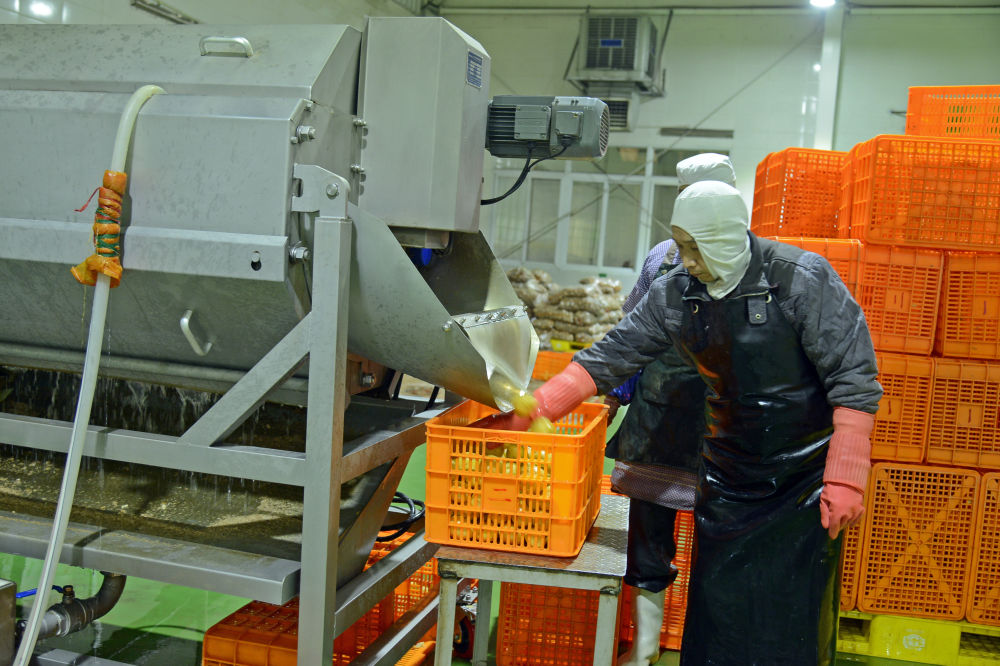 走进清洗车间,一台全自动蔬菜清洗脱皮机正在快速运转。“以前每天人工处理量在4吨左右,投入设备后,每天的处理量增至近10吨,极大地提高了生产效率。”车间主任罗文博介绍,全自动蔬菜清洗脱皮机是经技术团队连续半年反复实验研发而成,具有自主知识产权及核心技术,2023年首次投入使用,可广泛运用于土豆、生姜、萝卜等产品的前期处理。
