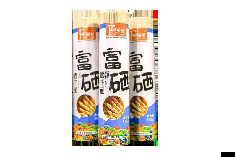 “悦福星”富硒晒干面采用本公司在龙潭富硒基地生产的富硒小麦粉,辅以优质雪花面粉精制而成。产品具有硒含量丰富、营养全面、口感好等特点,是你居家生活馈赠亲友的健康食品。