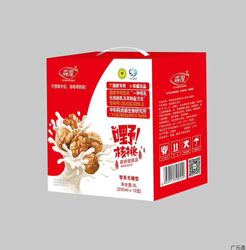 公司拥有核桃深加工基地占地220余亩、厂房68000平方米、机器设备主要有3条利乐生产线及其配套设施,是广元市目前最大的核桃深工加基地。
