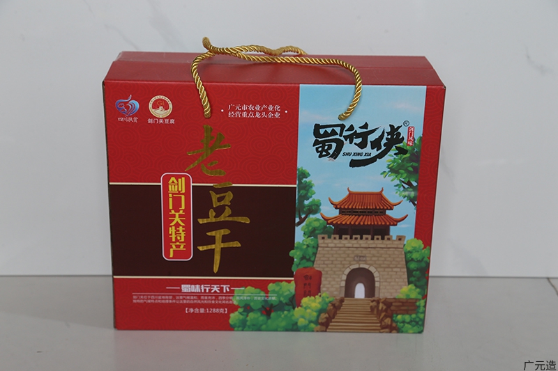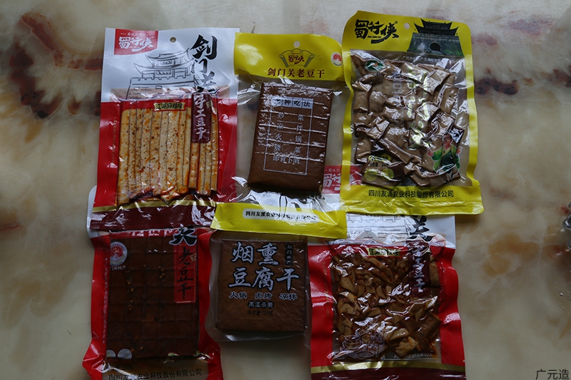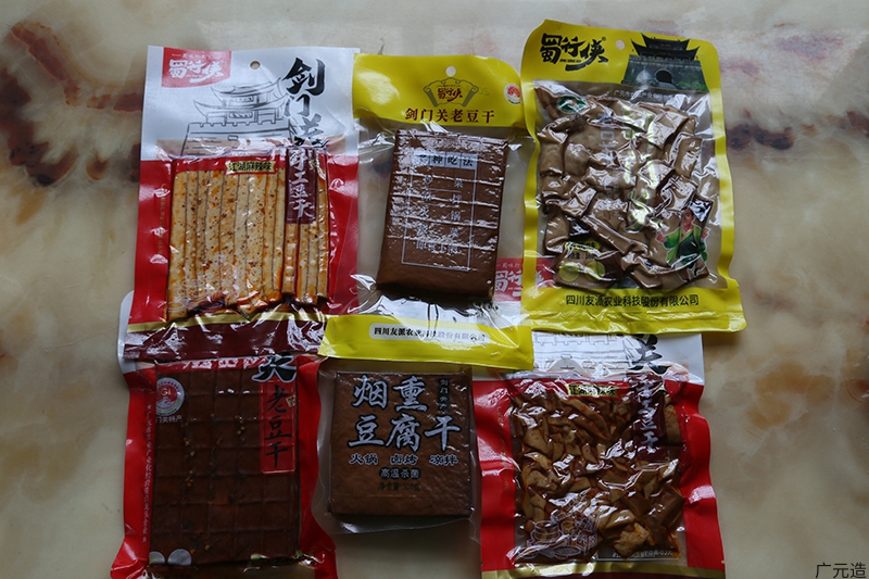 目前公司旗下的蜀行侠牌剑门关豆腐干系列产品主要包括剑门关老豆干(220g老豆干、180g老豆干、1288g老豆干礼盒)、剑门关手工豆干(散称系列手工豆干、85g手工豆干、248g手工豆干、518g手工豆干)、坚果豆腐派(散称系列、1688g礼盒装)、剑门关豆腐宴礼盒装等系列产品。公司产品先后获得剑门关豆腐国家地理标志保护产品授权生产商、非物质文化遗产剑门关豆腐技艺传承人、第七届四川农业博览会(最受欢迎四川扶贫产品)称号。目前公司产品远销西南、西北、华北等地的各大卖场,特别是成都重庆的各大机场及各大旅游景区均有销售。