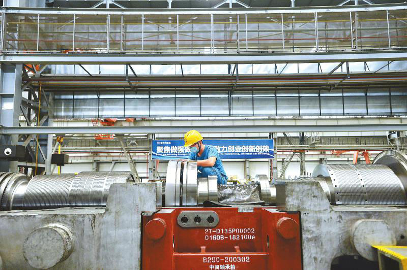 7月21日,东方汽轮机有限公司正加紧生产。该公司是我国最大的发电设备制造企业之一。