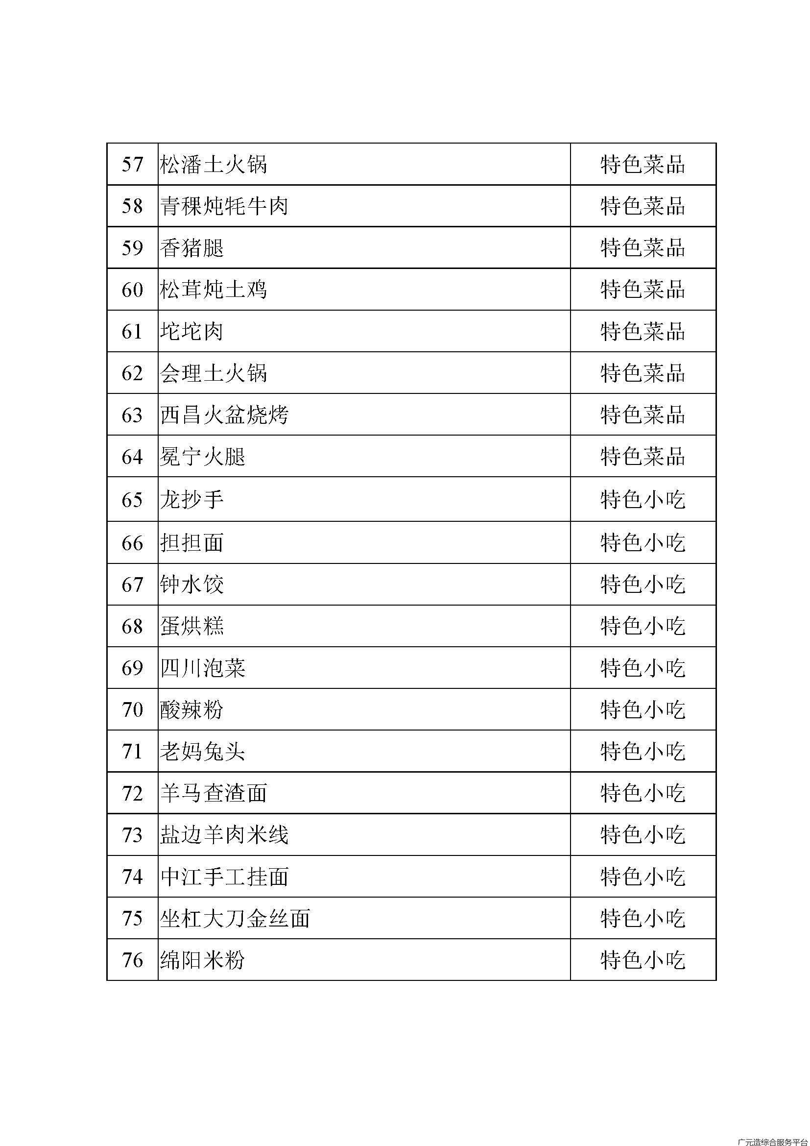 省级天府旅游美食名单