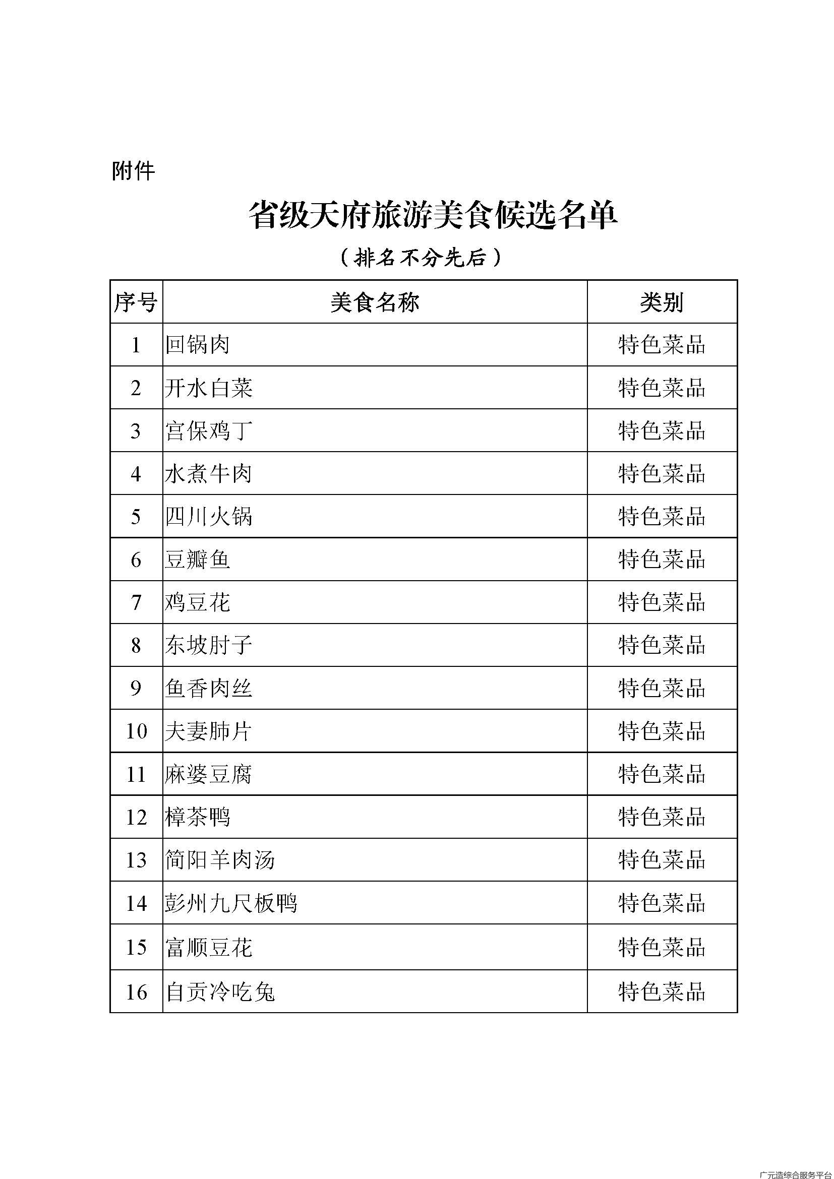 为广泛听取社会各界意见,接受公众监督,现将省级天府旅游美食候选名单予以公示,如有异议,请实名书面反馈至文化和旅游厅非物质文化遗产处。