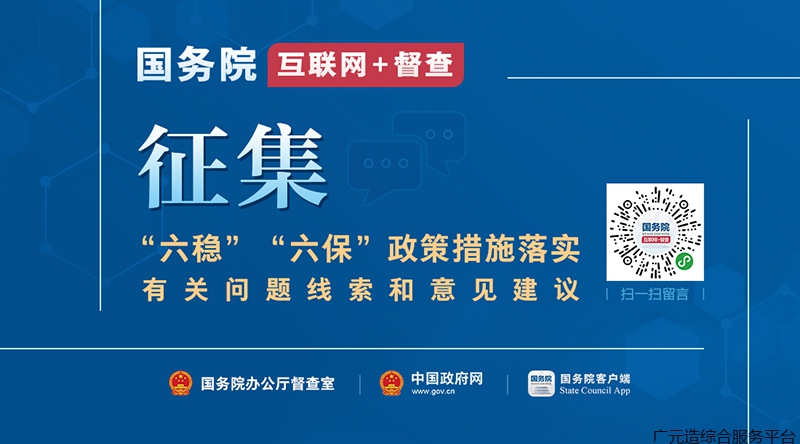 为深入贯彻十三届全国人大三次会议精神,认真落实党中央、国务院关于统筹推进疫情防控和经济社会发展的重大决策部署,推动政府及其部门在疫情防控常态化前提下,扎实做好“六稳”工作,全面落实“六保”任务,确保完成《政府工作报告》提出的经济社会发展目标任务,国务院“互联网+督查”平台从即日起面向社会征集关于“六稳”“六保”政策措施落实的问题线索和意见建议。