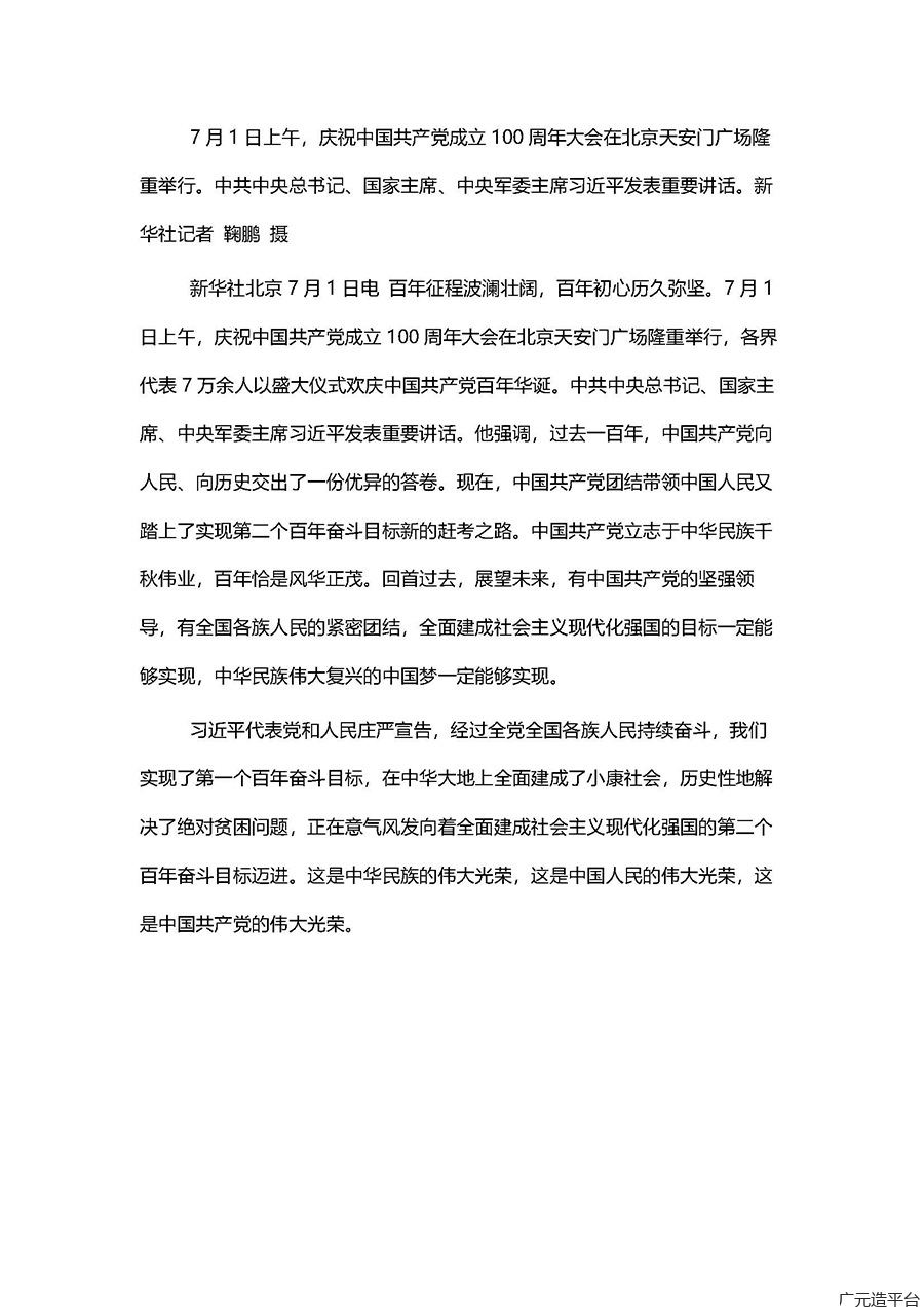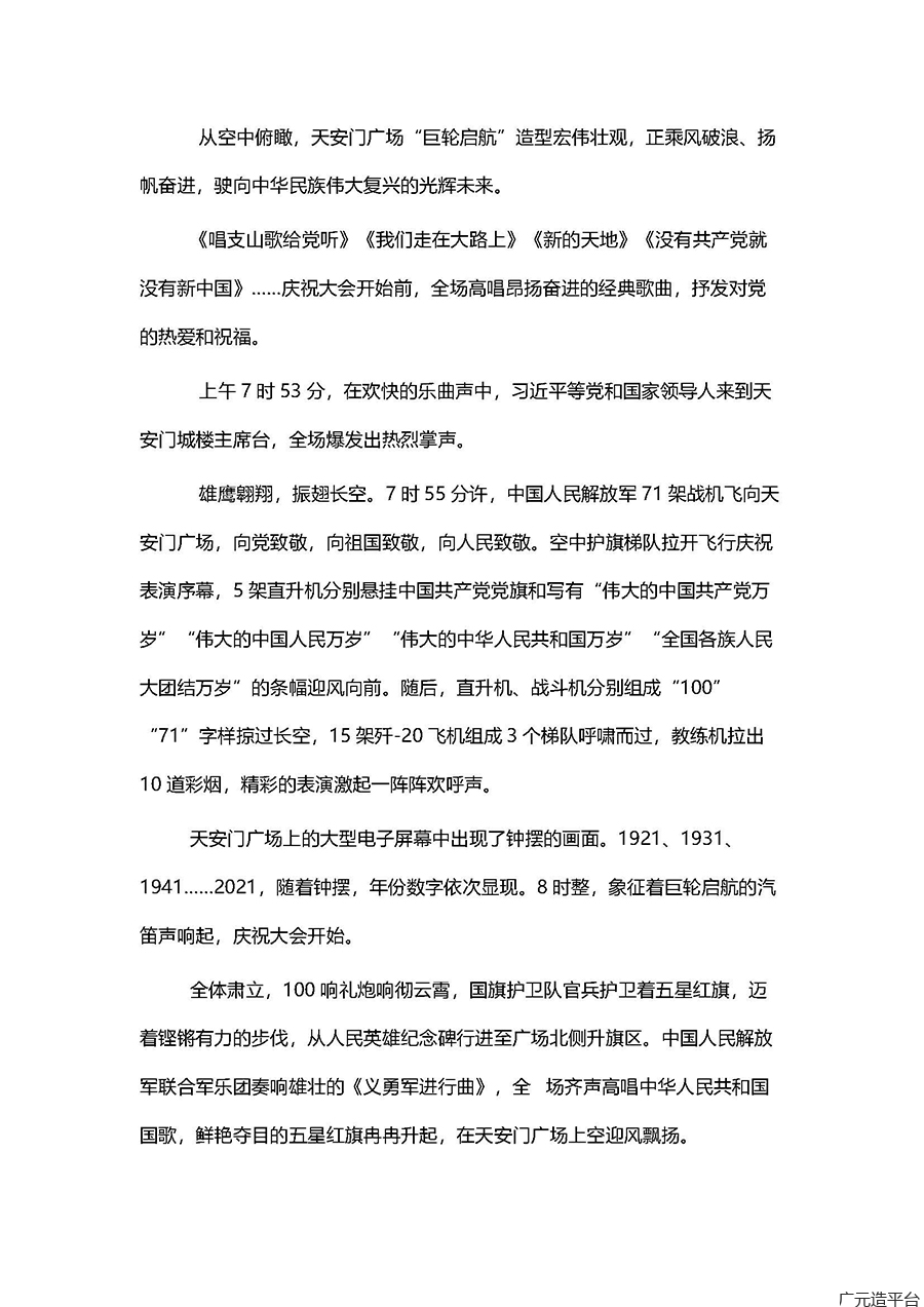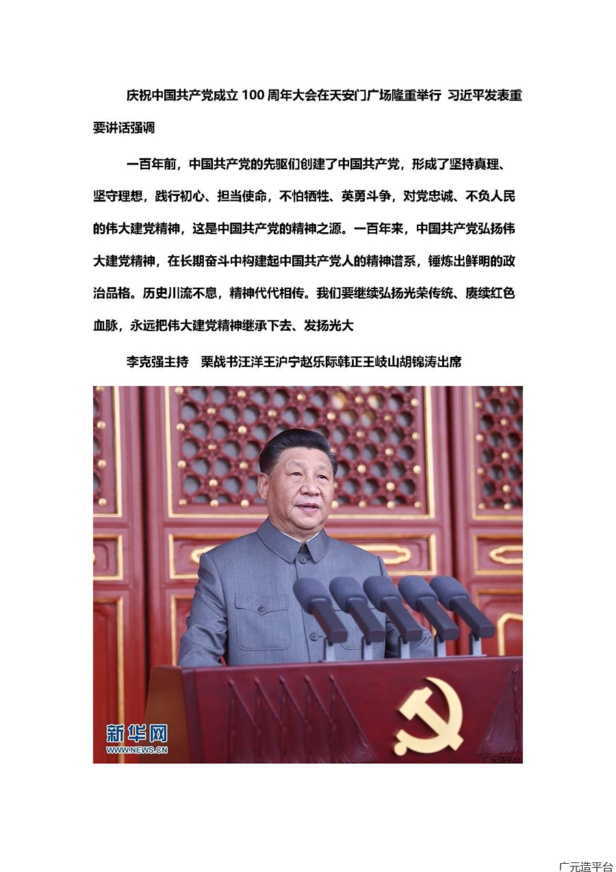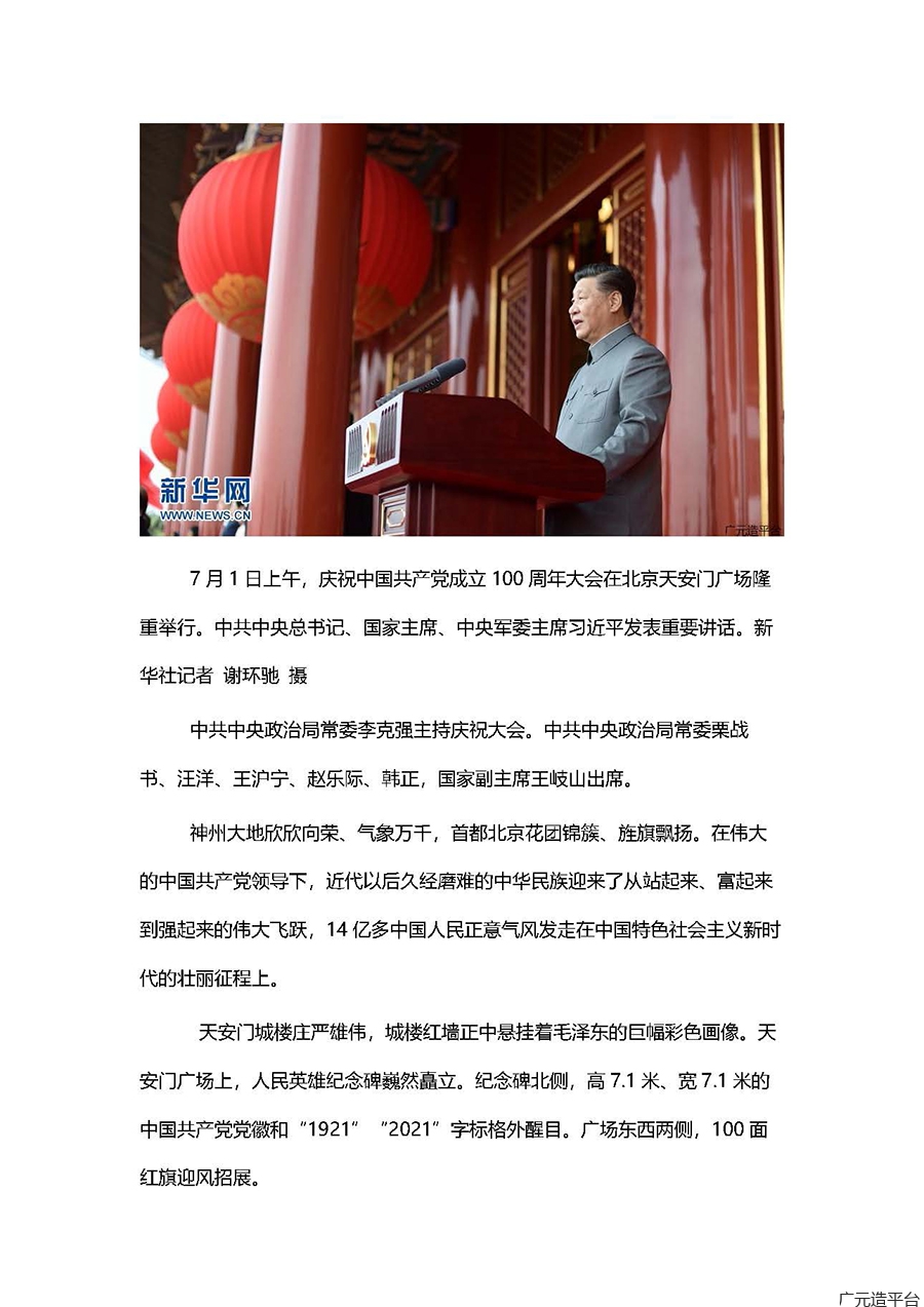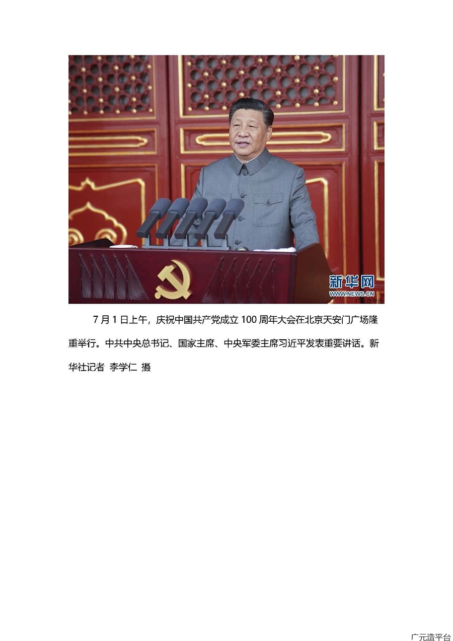 7月1日上午,中国共产党成立100周年大会在天安门隆重举行