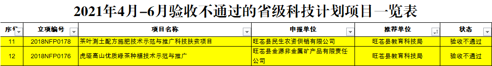 根据《四川省科技计划项目管理办法》《四川省科技计划项目验收管理办法》,现对2021年4月至2021年6月完成验收手续的省科技计划项目进行公告(项目清单见附件)。验收不通过的项目,项目结余资金按规定应原渠道退回(相关退款事宜另行通知),项目负责人或承担单位3年内不得申报省级科技计划项目。