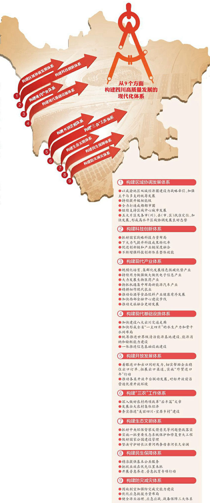 “既管当前,又利长远。”12月21日,在省委经济工作会议与会代表看来,在“十四五”的开局之年和全面建设社会主义现代化四川新征程开启之年,围绕推动四川高质量发展,会议系统谋划和研究了9个方面重大问题,既是对近年来我省经济工作的实践总结,也是对当前和今后一个时期推动高质量发展的整体谋划。9个方面,如何构建四川高质量发展的现代化体系?