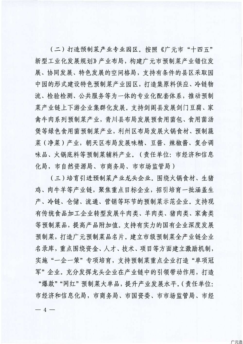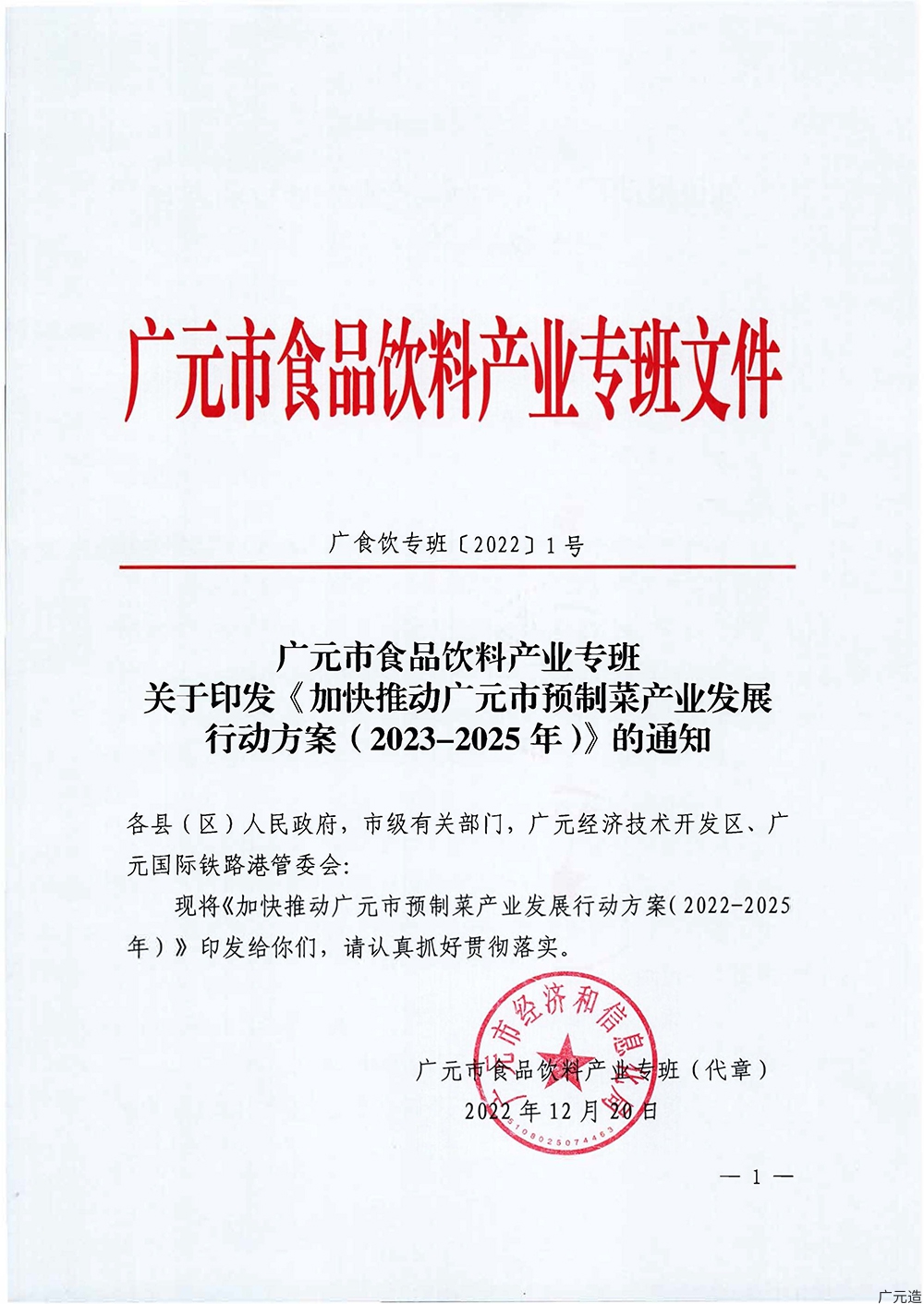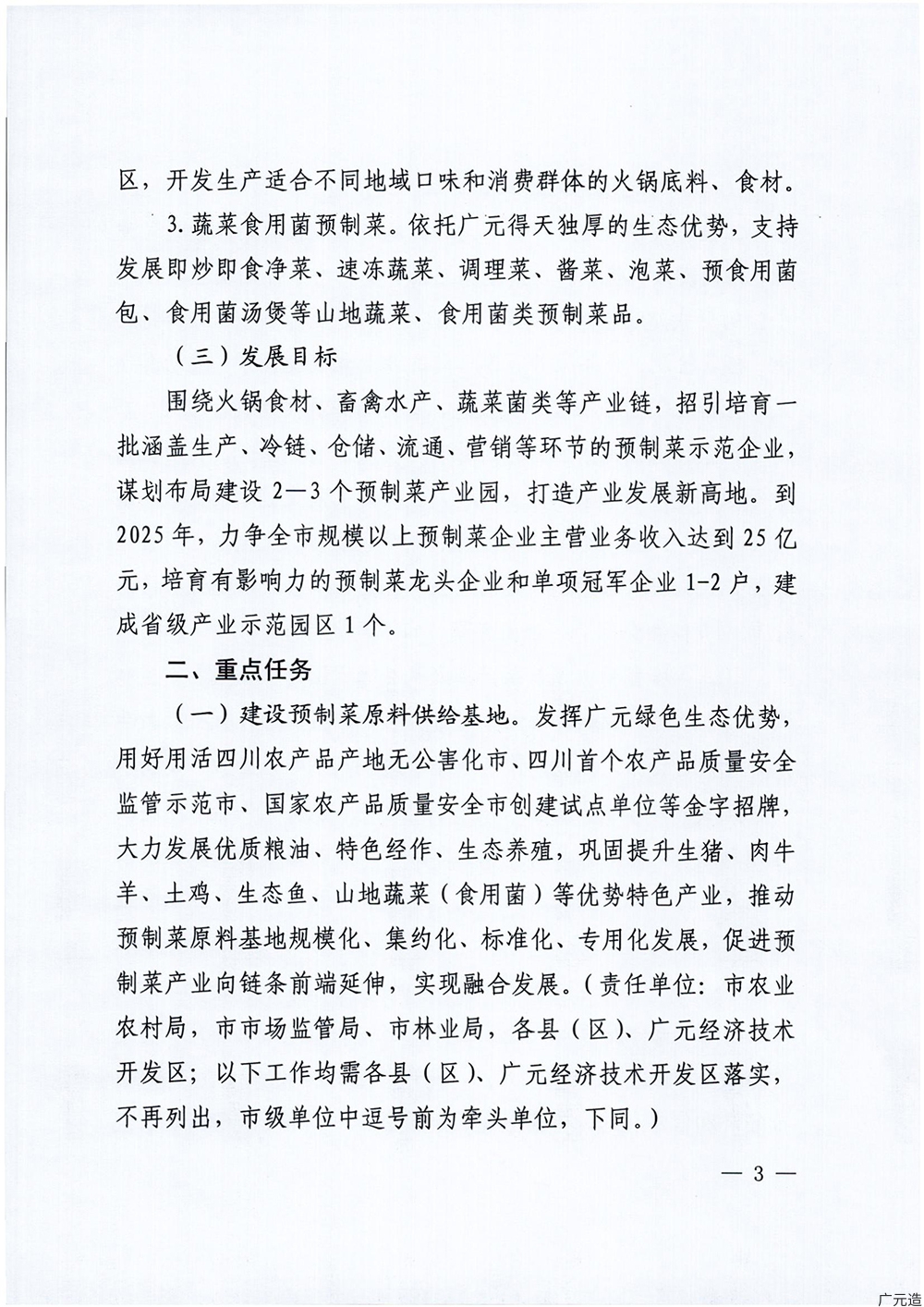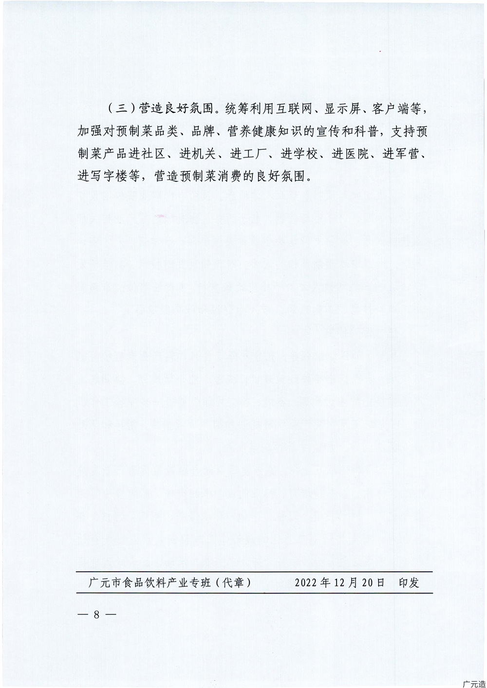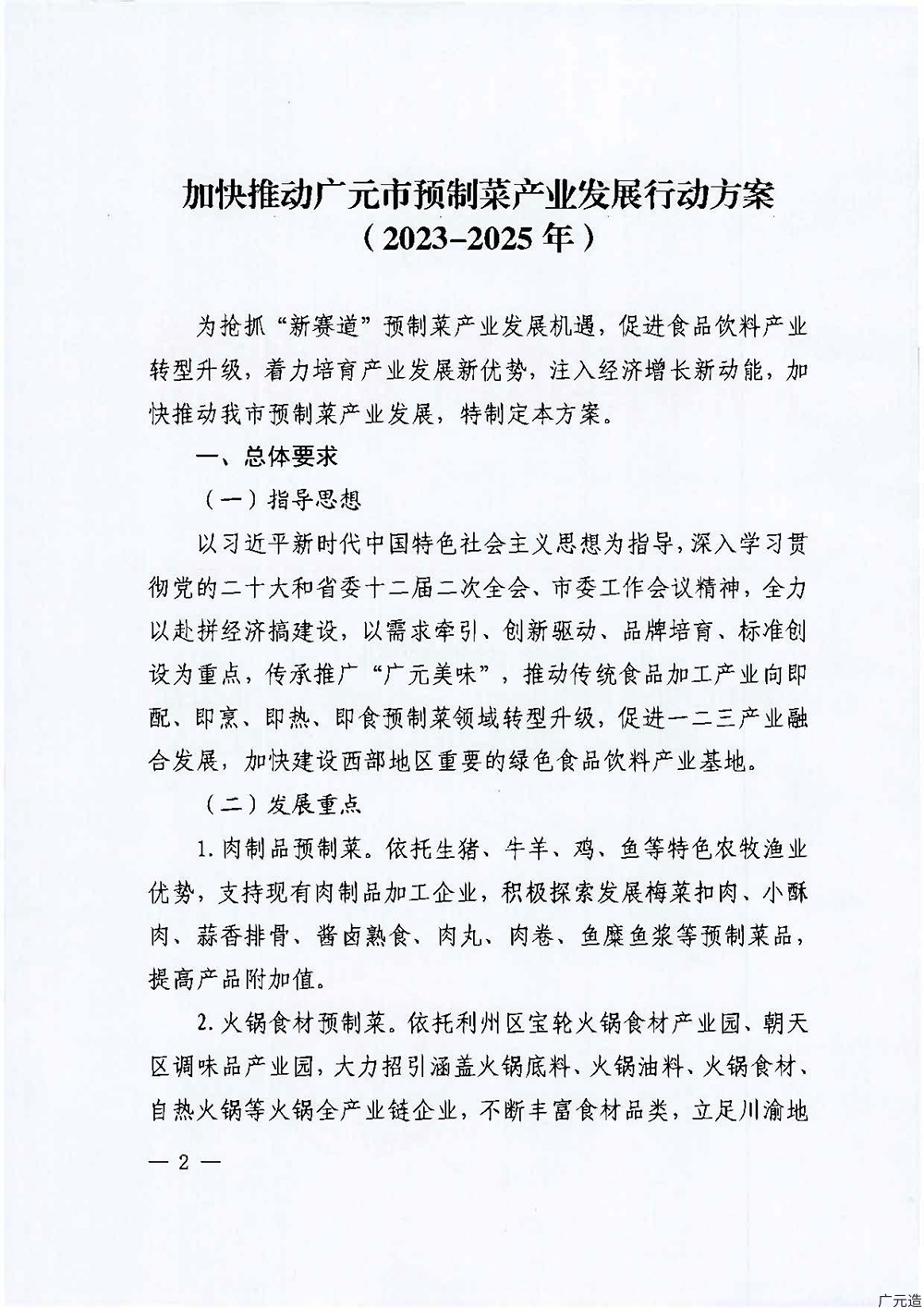 广元市食品饮料产业专班 关于印发《加快推动广元市预制菜产业发展行动方案(2023-2025年)》的通知