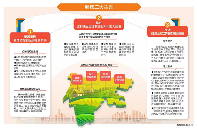 从时间看,读书班的举办是在奋力夺取疫情防控和经济社会发展“双胜利”的重要时期,在决战决胜全面小康关键之年时间过半的关键节点。从主题看,统筹推进疫情防控和经济社会发展、推进城乡基层治理制度创新和能力建设、推动成渝地区双城经济圈建设,读书班聚焦的三大主题事关治蜀兴川发展大局。