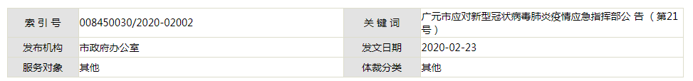 广元市应对新型冠状病毒肺炎疫情应急指挥部